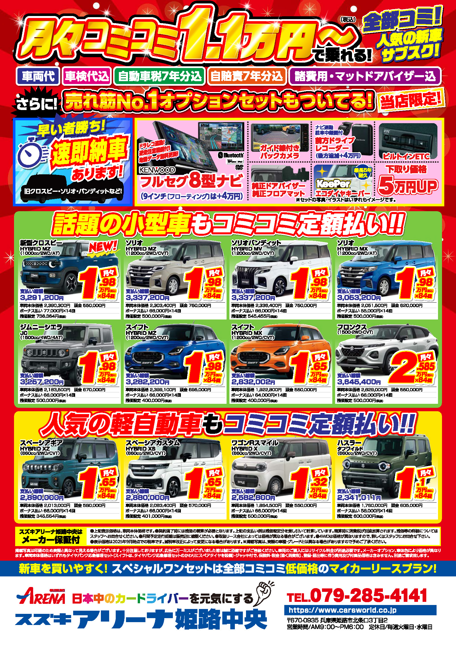 🚘 月々コミコミ1.1万円〜で新車に乗れる!