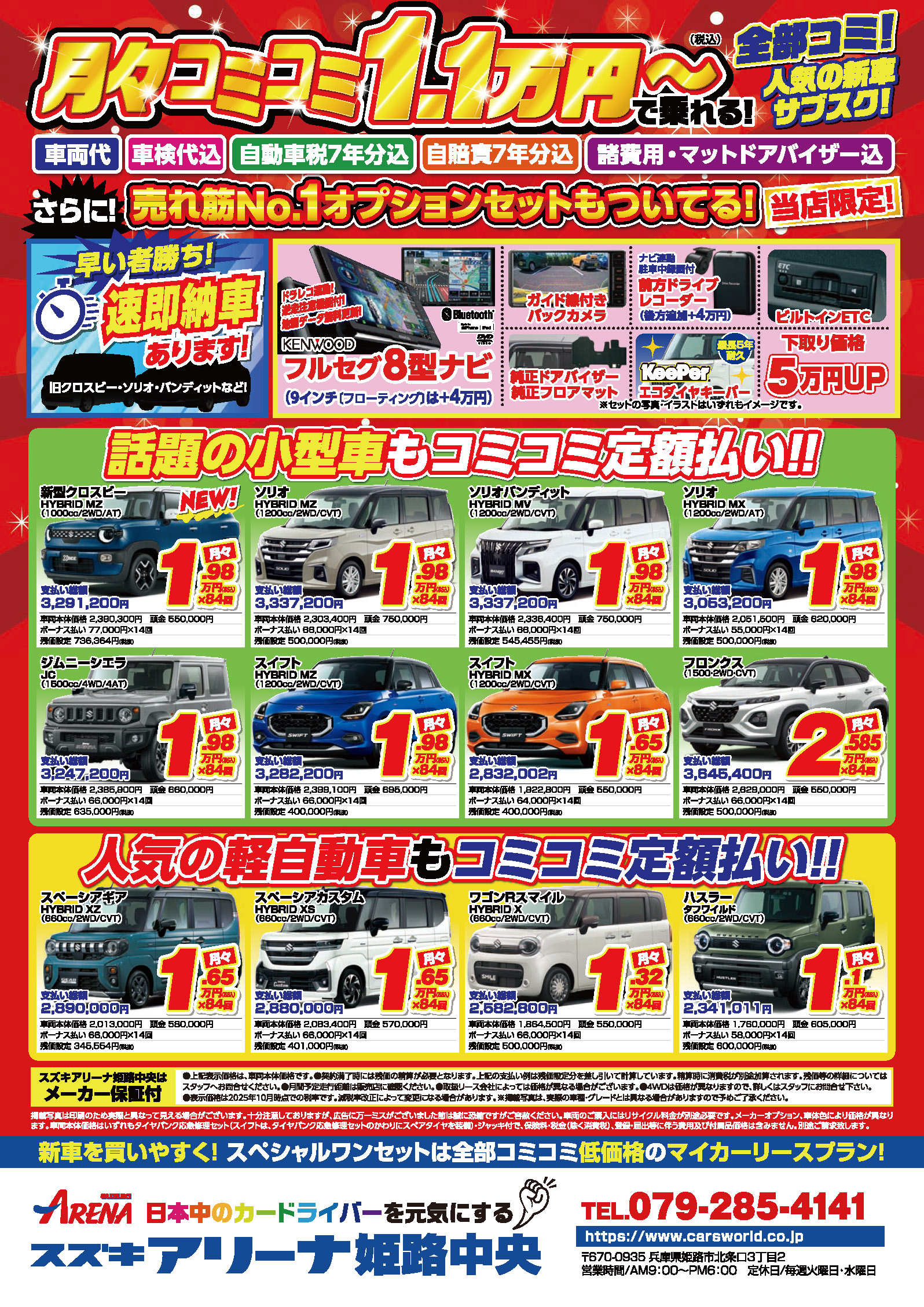 月々1.1万円~の定額プランと台数限定の特選車を掲載しました。